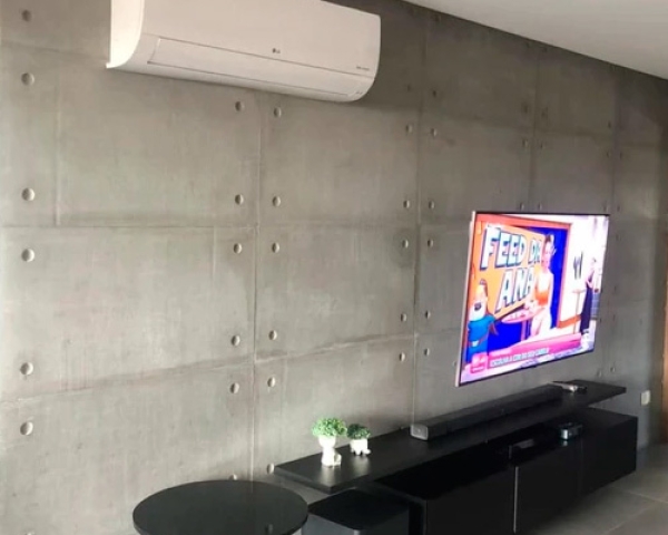 Placas em concreto aparente, ficam perfeitas em ambientes interno ou externos.